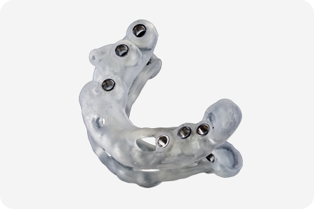 患者さまに安心して満足いただけるインプラント治療を行うには、計画通りの位置・角度・深さにインプラント体を正確に埋め込むことが大切です。当院では、すべての患者さまに対して、歯科用CTのデータをもとにマウスピース型の手術用ガイドを作製しています。このガイドを使うことで、より誤差の少ない処置が可能です。