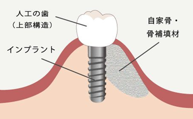 主に上顎の骨が不足している場合に行う治療です。骨が不足している部分に骨補填材を入れ、骨の再生を促します。